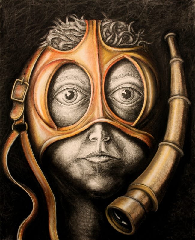 Running my Own Race (2011) 60x48cm, Fine point ink pen, charcoal, pastel, conte on Arches paper