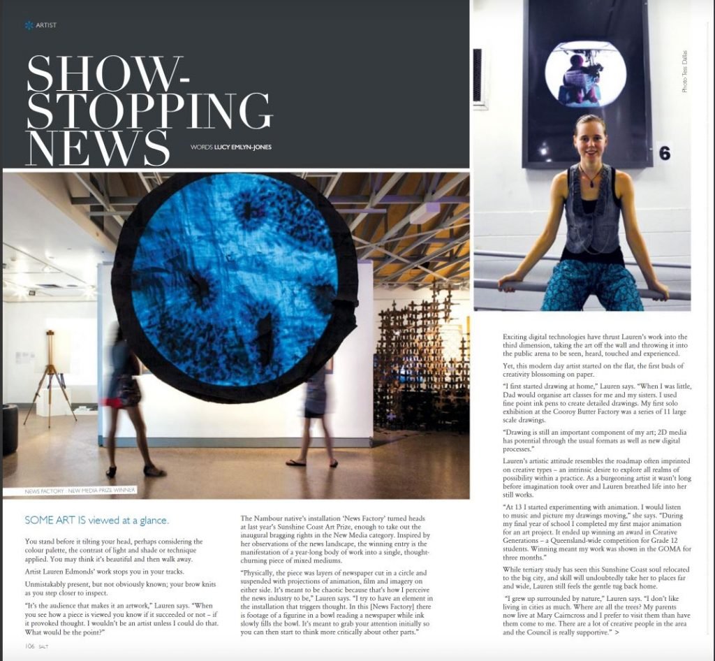 This work received two awards in the Sunshine Coast Art Prize New Media Art Category 2014
